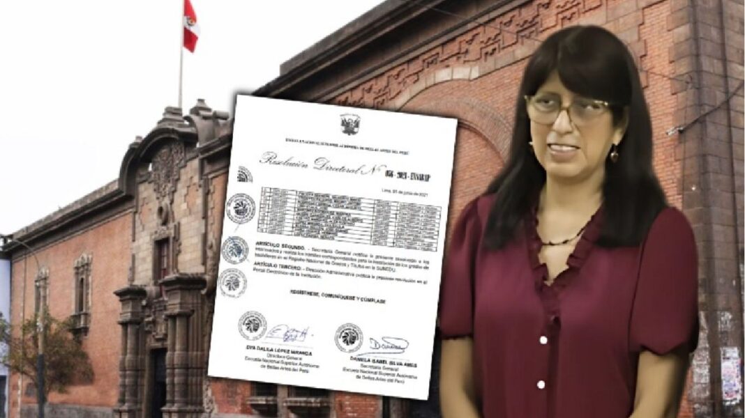 Eva Dalila López obtuvo su grado académico mediante una resolución que ella misma firmó, mientras más de 500 exalumnos de Bellas Artes aún esperan acceder a ese derecho, pese a estar en condiciones similares.