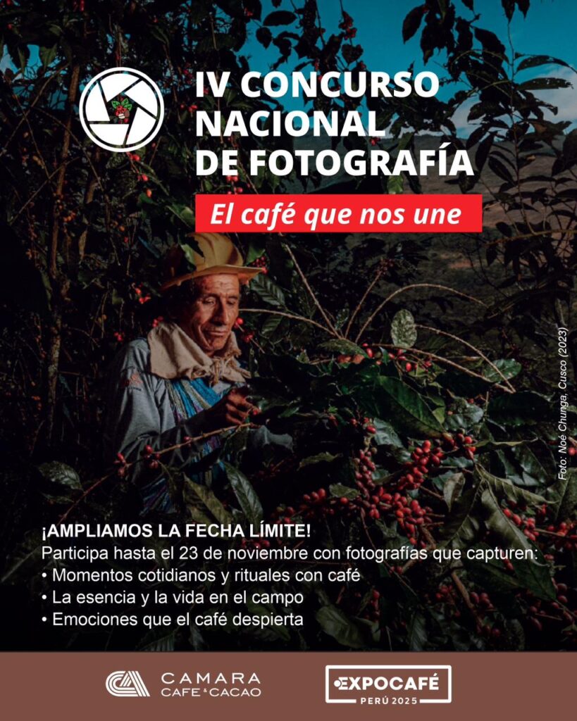 El concurso anunció también que el cierre de recepción de fotografías será hasta el 20 de noviembre para esta etapa final de envíos, según el cronograma de organización. Para consultas e inscripciones, los interesados pueden escribir a concurso@camcafeperu.com.pe o al WhatsApp +51989375916
