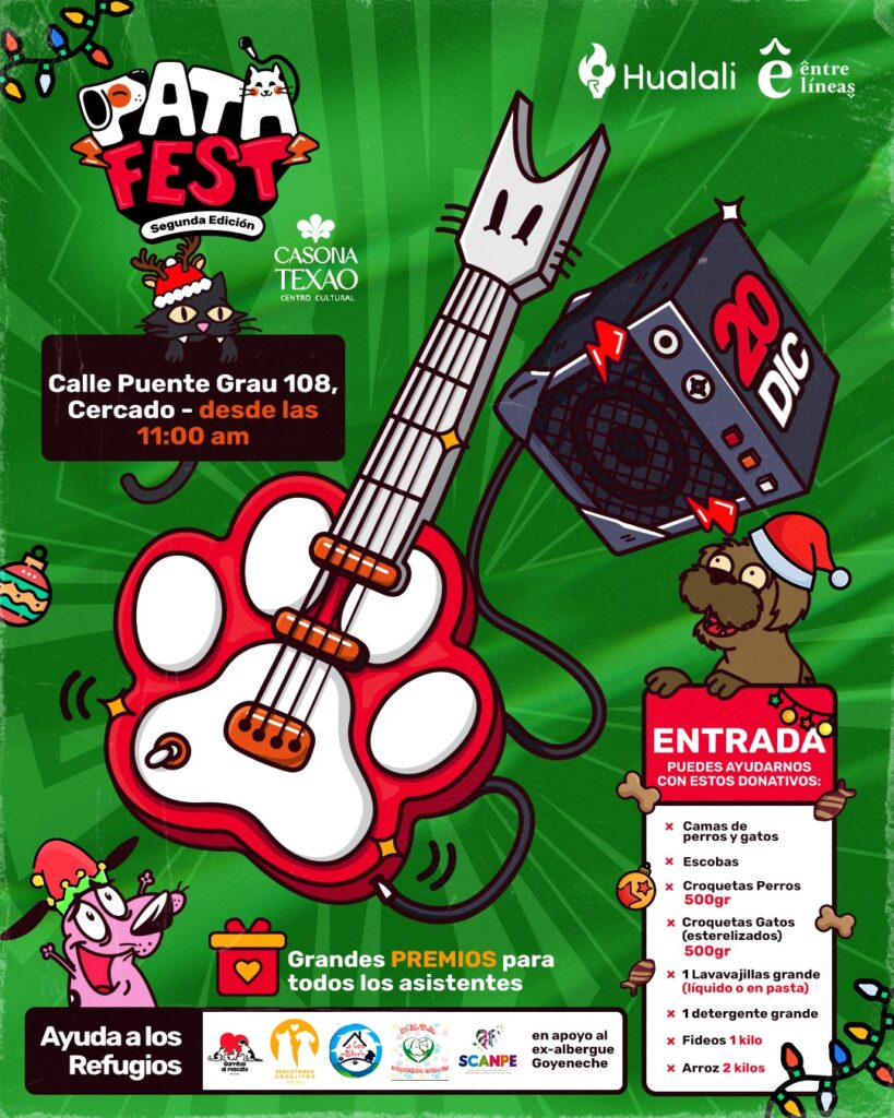 En esta segunda edición, organizada por Hualali, Entre Líneas y Casona Texao, el PATAFEST busca consolidarse como un festival cultural benéfico donde el arte y la música se convierten en herramientas de apoyo social, promoviendo la solidaridad y el compromiso ciudadano con la protección animal en Arequipa.